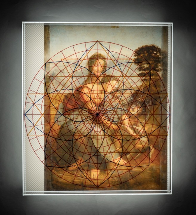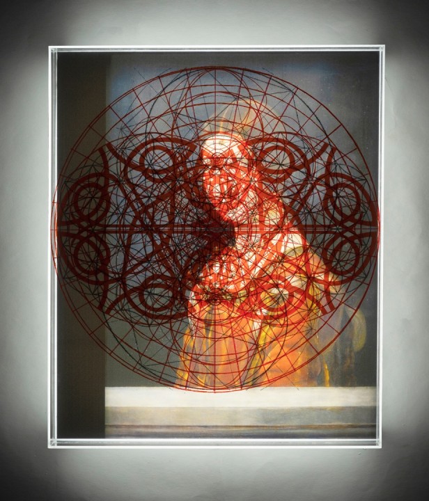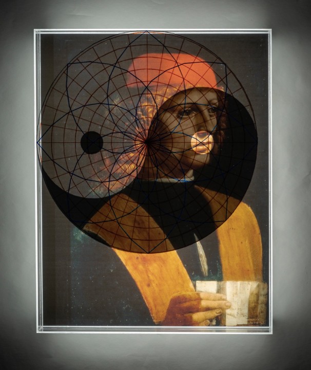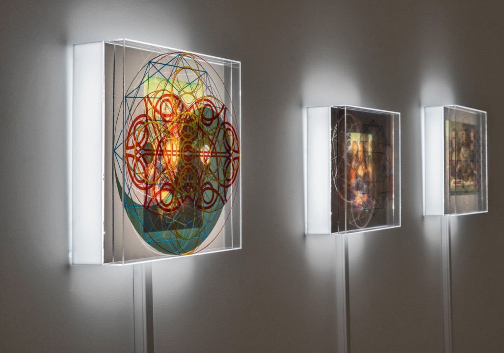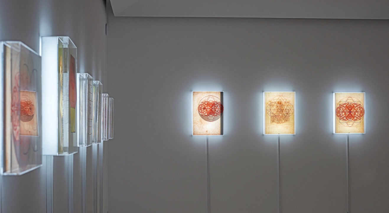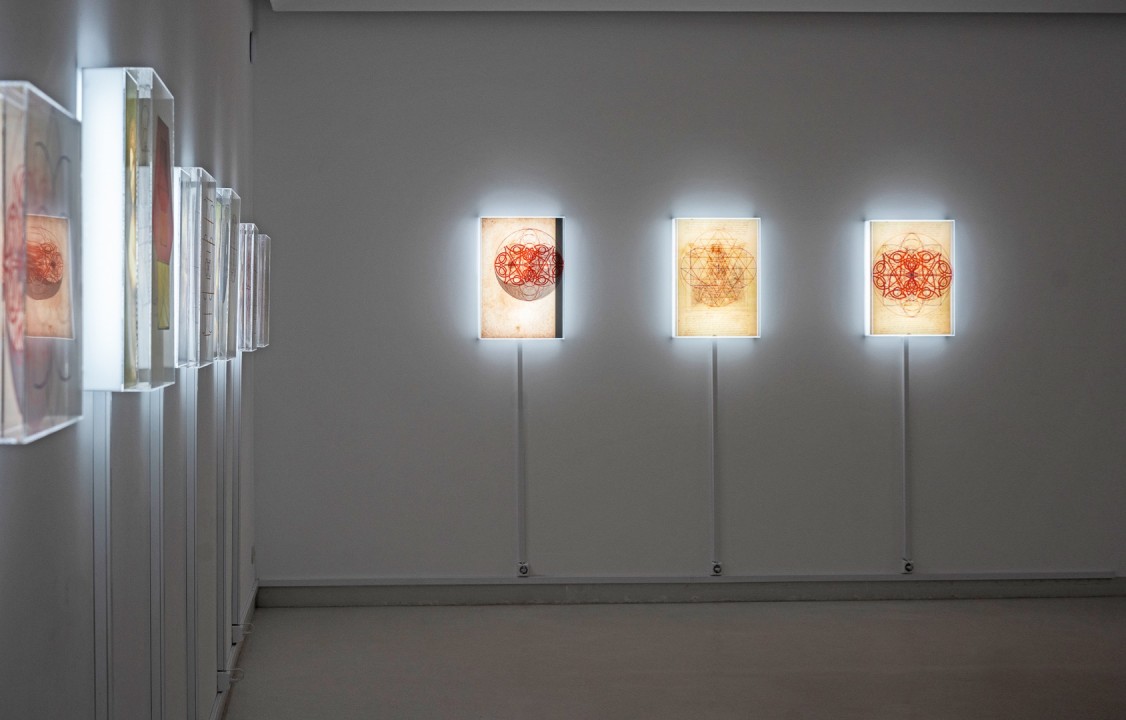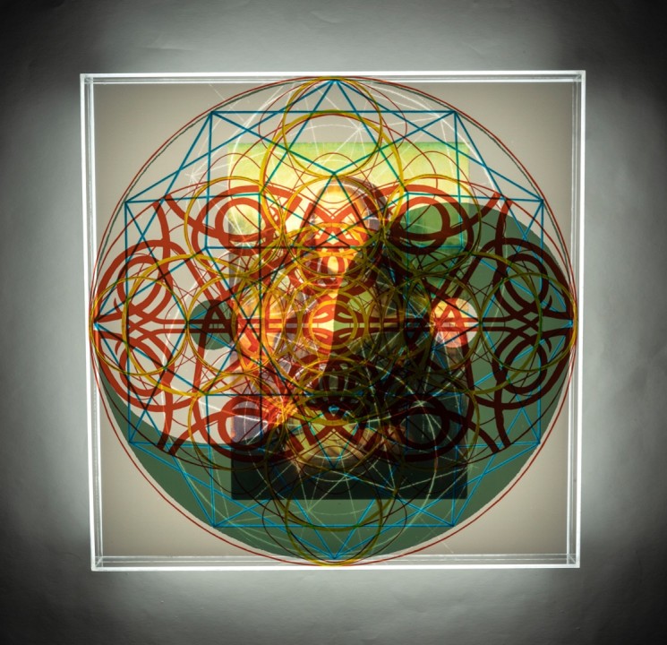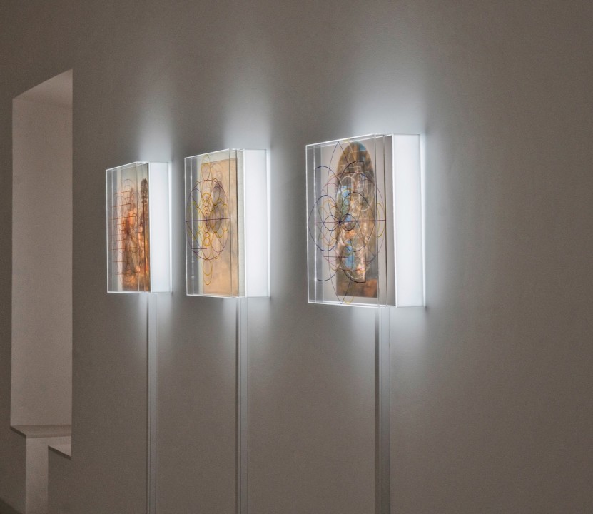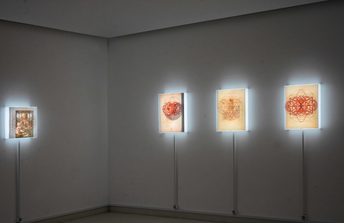 "The project’s starting points are some of the most iconic paintings and drawings by Leonardo da Vinci (1452-1519) – The Last Supper, Mona Lisa, Saint John the Baptist, Virgin of the Rocks, among other lesser-known works –, from where the artist deconstructs geometric propositions existing in a collective unconscious. Using a scientific, artistic, and religious methodology and through in-depth investigative knowledge in detailed symbology study, the presented works moreover, question our own way of grasping the world by analysing an innate internal structure. In this sense, immutable signs are understood in changing contexts, namely social, political, cultural or temporal, which go beyond the symbols fixed meanings. By dropping its signifying anchor, symbols reveal an incidental formalism, or a combinatorial chain of meanings, dependent on human sensibility translating into a set of ideas, emotions and languages common to all societies.