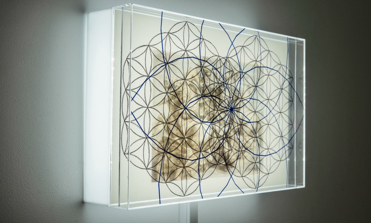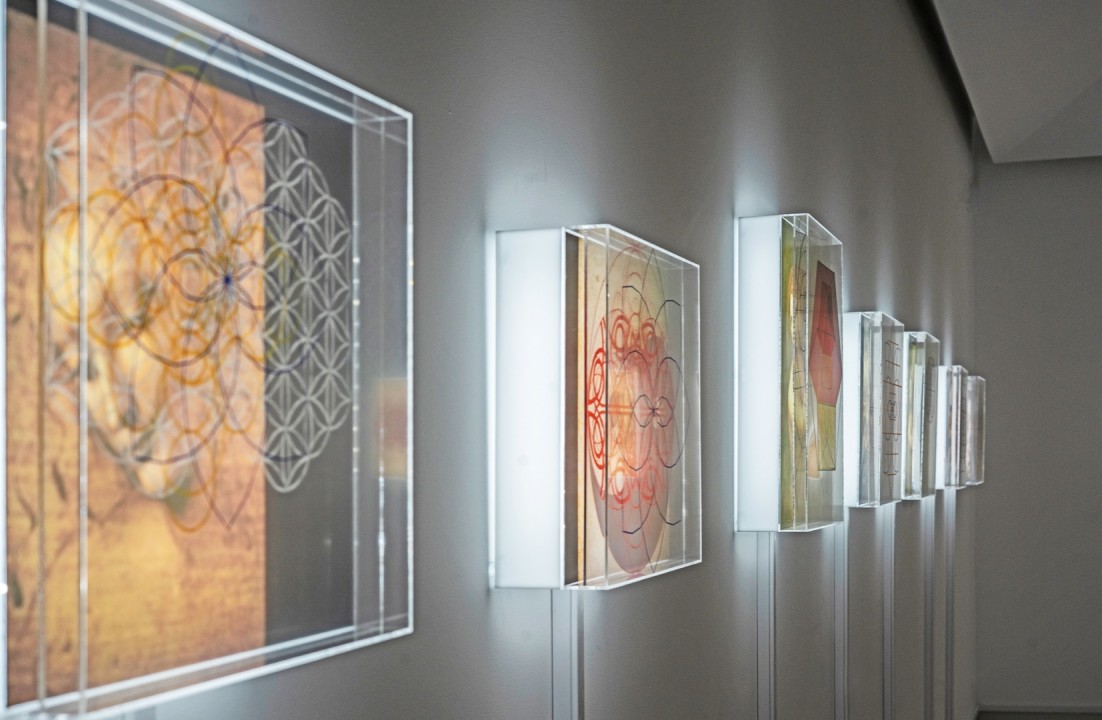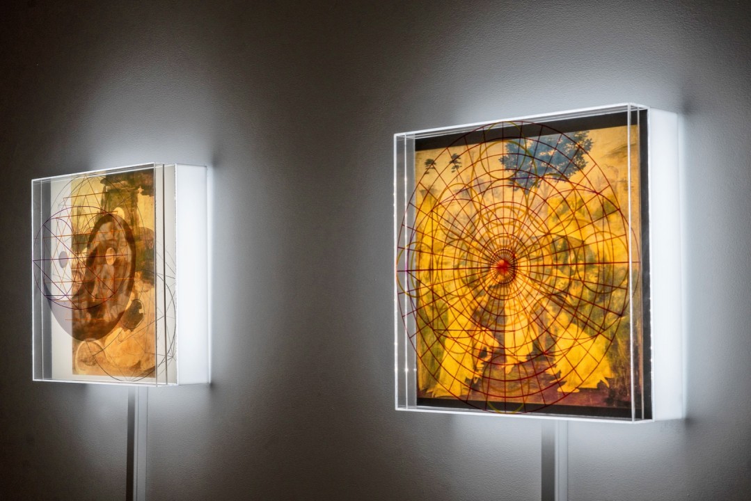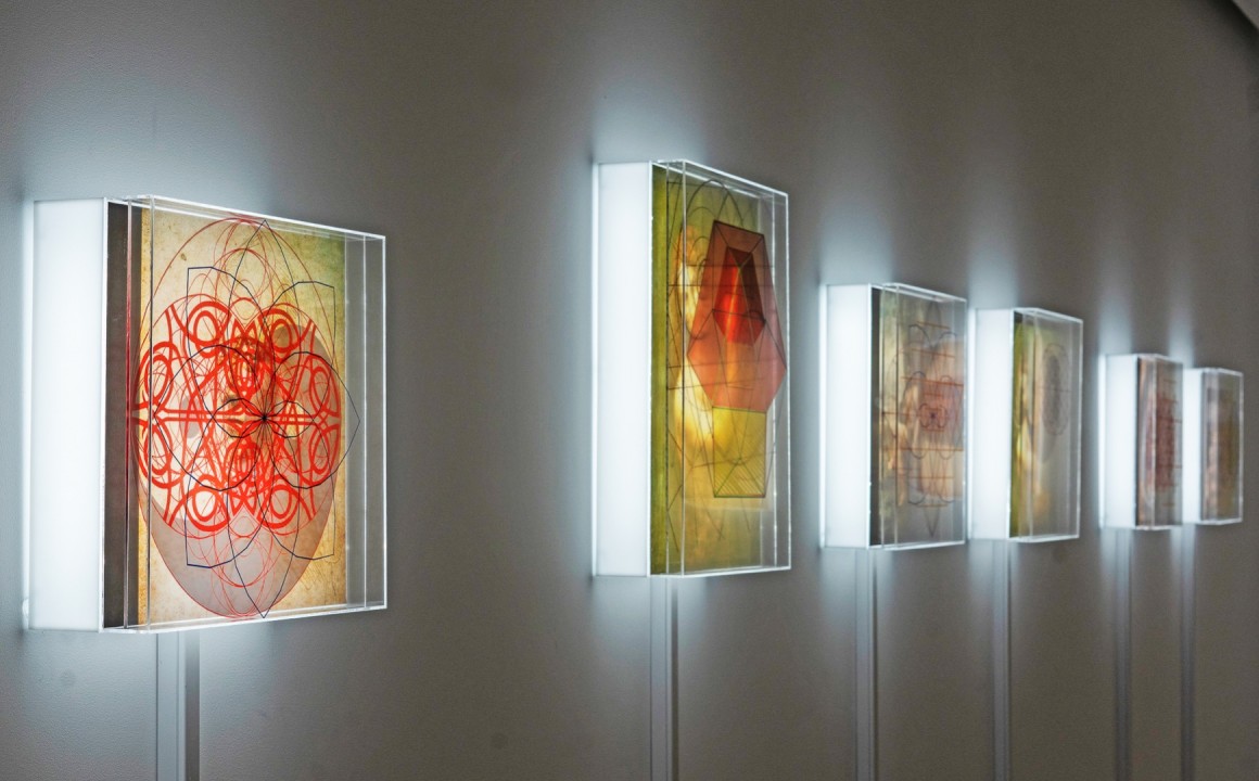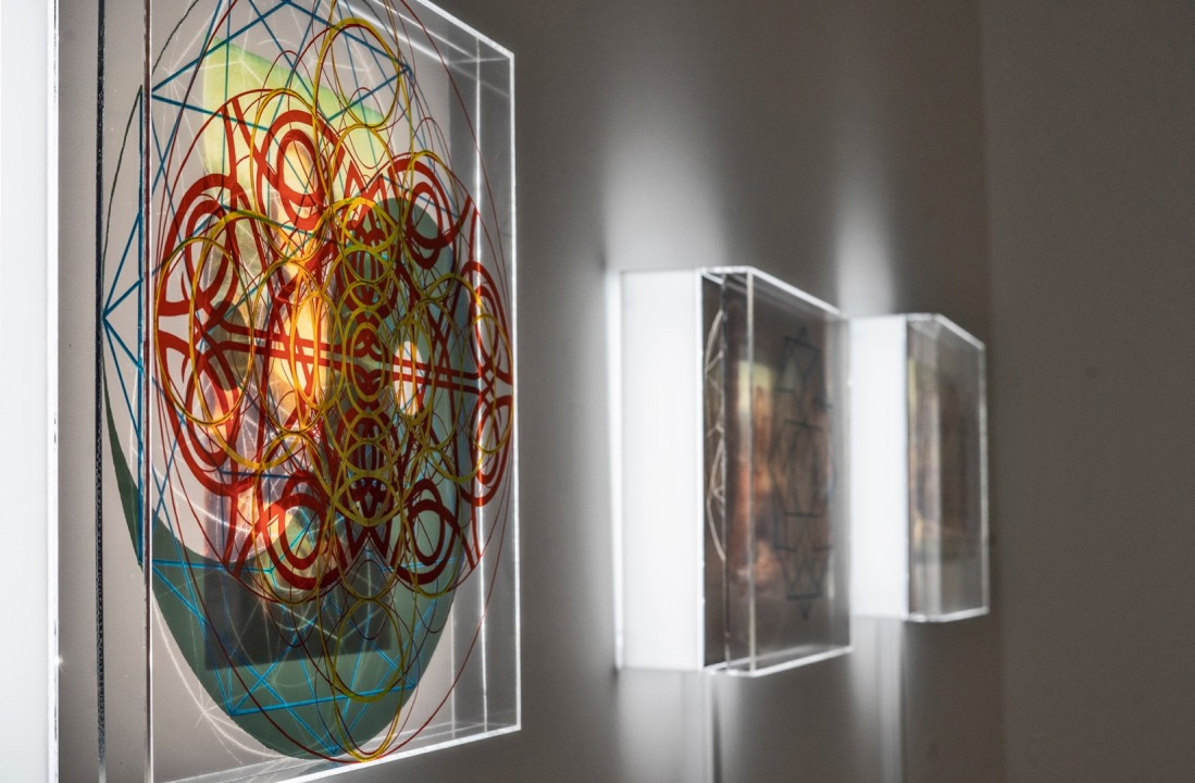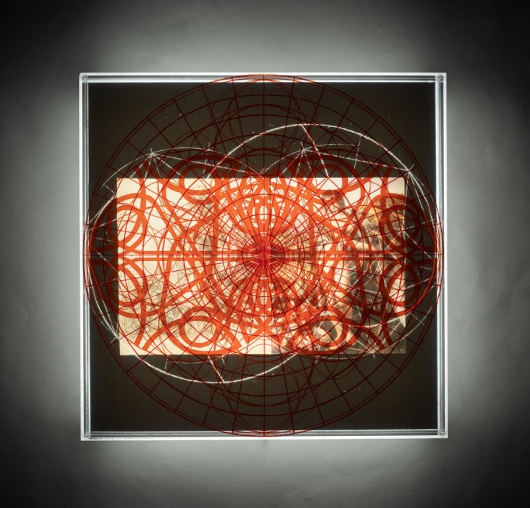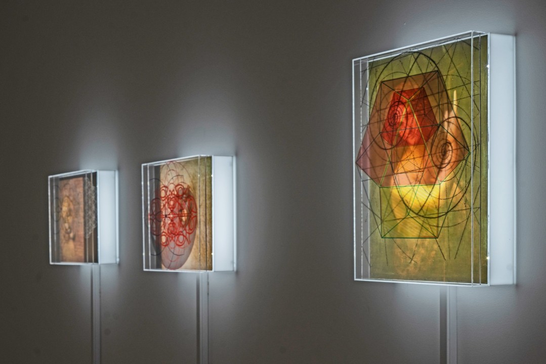 "The project’s starting points are some of the most iconic paintings and drawings by Leonardo da Vinci (1452-1519) – The Last Supper, Mona Lisa, Saint John the Baptist, Virgin of the Rocks, among other lesser-known works –, from where the artist deconstructs geometric propositions existing in a collective unconscious. Using a scientific, artistic, and religious methodology and through in-depth investigative knowledge in detailed symbology study, the presented works moreover, question our own way of grasping the world by analysing an innate internal structure. In this sense, immutable signs are understood in changing contexts, namely social, political, cultural or temporal, which go beyond the symbols fixed meanings. By dropping its signifying anchor, symbols reveal an incidental formalism, or a combinatorial chain of meanings, dependent on human sensibility translating into a set of ideas, emotions and languages common to all societies.