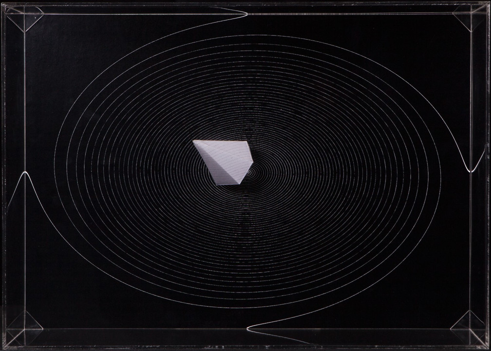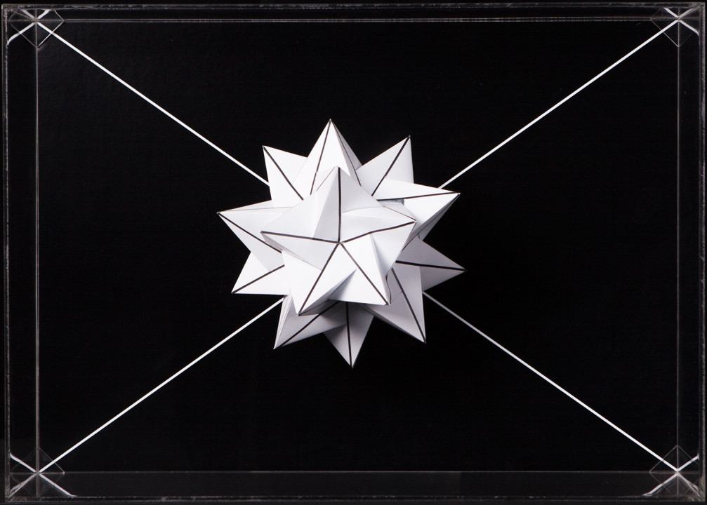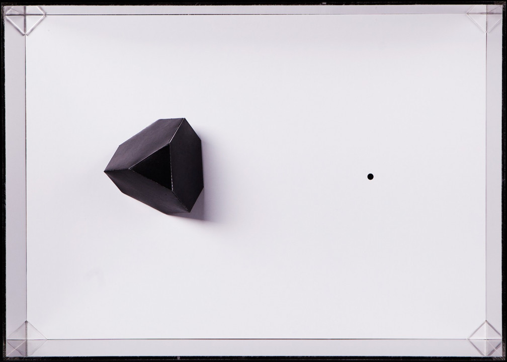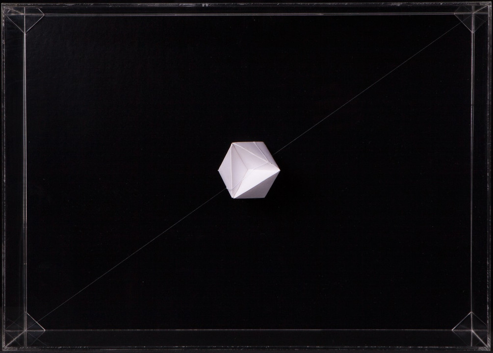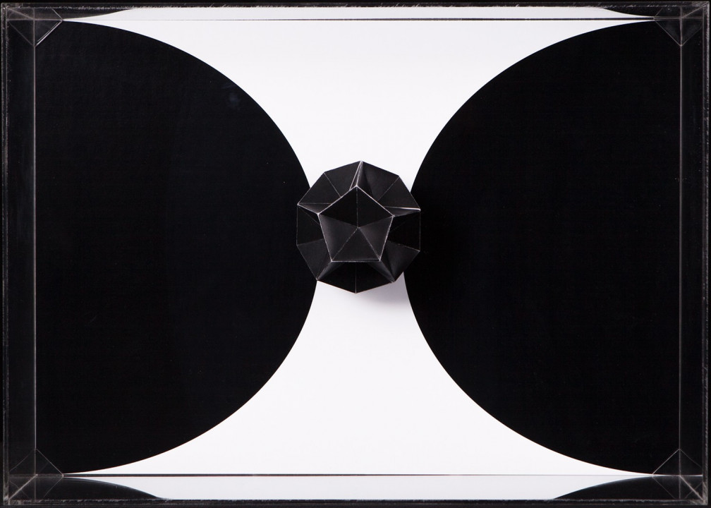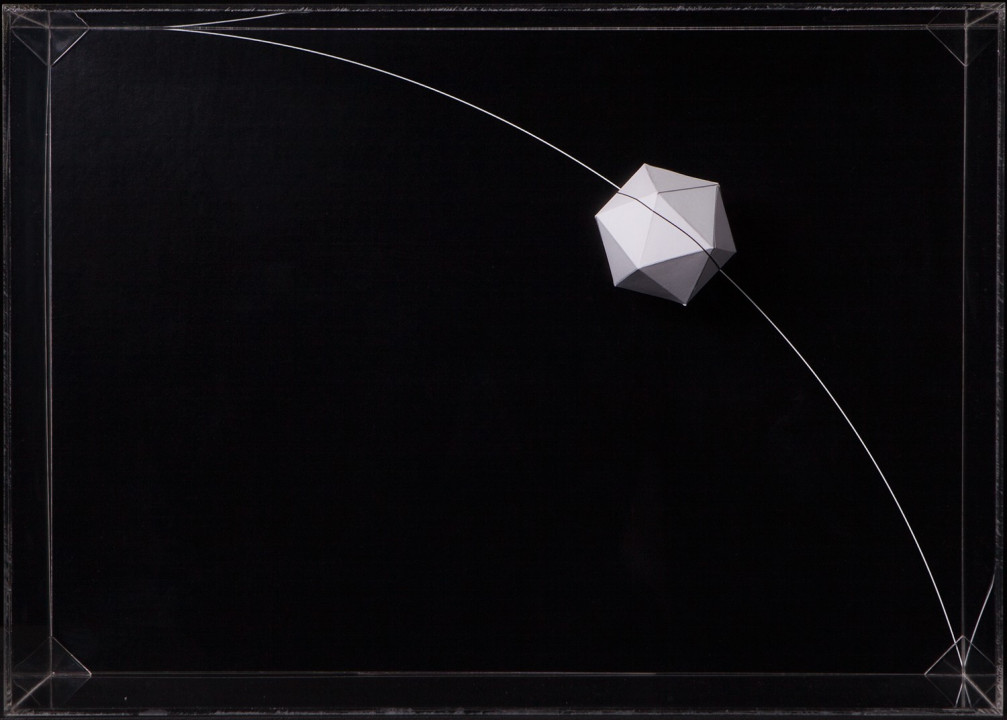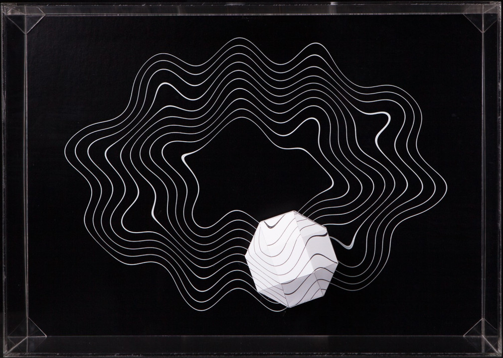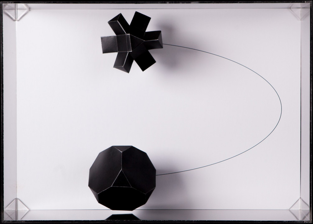 Hyperbolic Hyparxis is an exhibition comprising 60 new works by the artist Margarida Sardinha for the Faculty of Sciences of the University of Lisbon. The monochromatic site-specific exhibition consists of Hyperbolic Hyparxis (an experimental film), Hyperbolic Curves (a 10ft diameter floating sphere filled with helium), Hyperbolic Polyhedra (4 large scale sculptures), Shadow Symbols and Points, Lines and Distances (respectively 36 and 20 works containing a digital background photograph and a three-dimensional polyhedron overlaying it). The five sets of works complement each other in a liminocentric way, thus, they repeat each other akin to recursive definitions in hyperbolic spaces. Its general concept relates to the following scientific, mathematical and geometrical notions:
