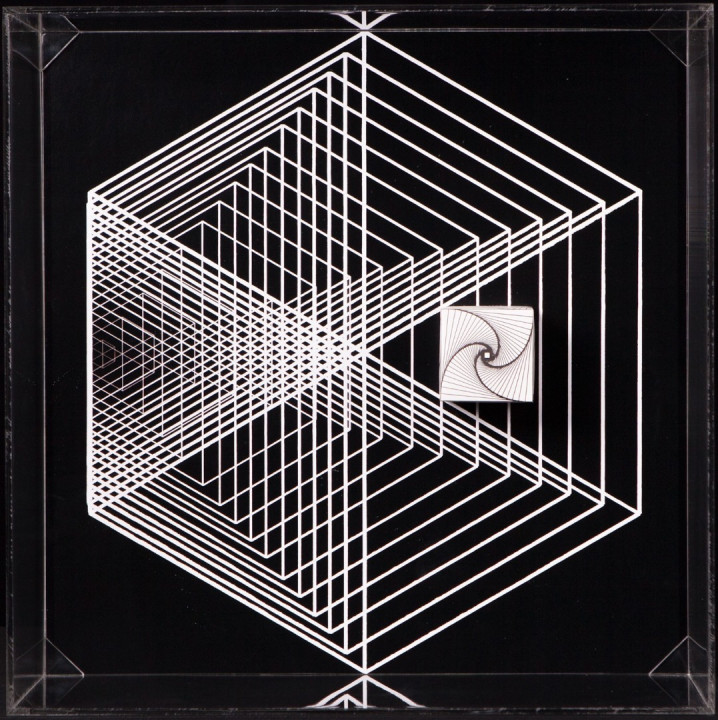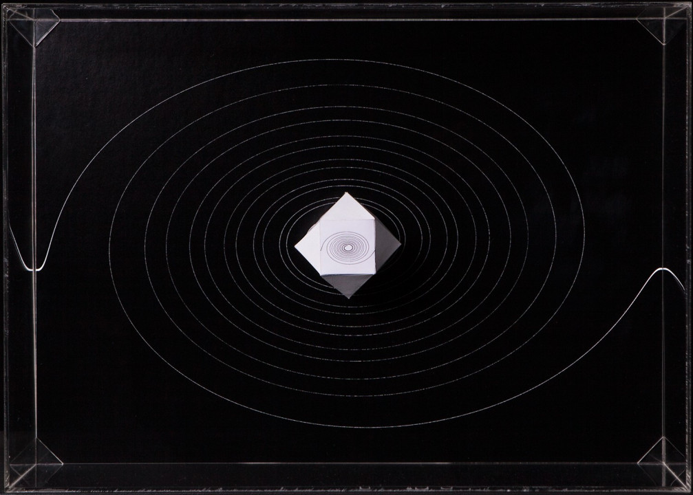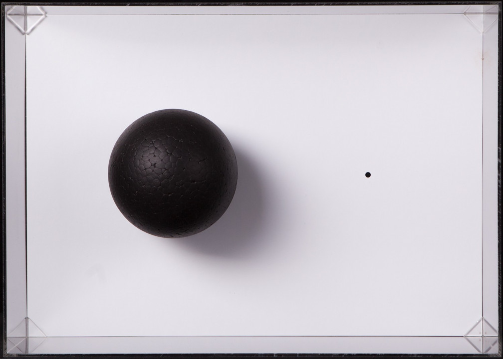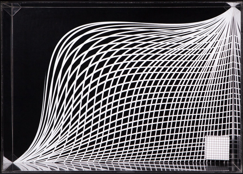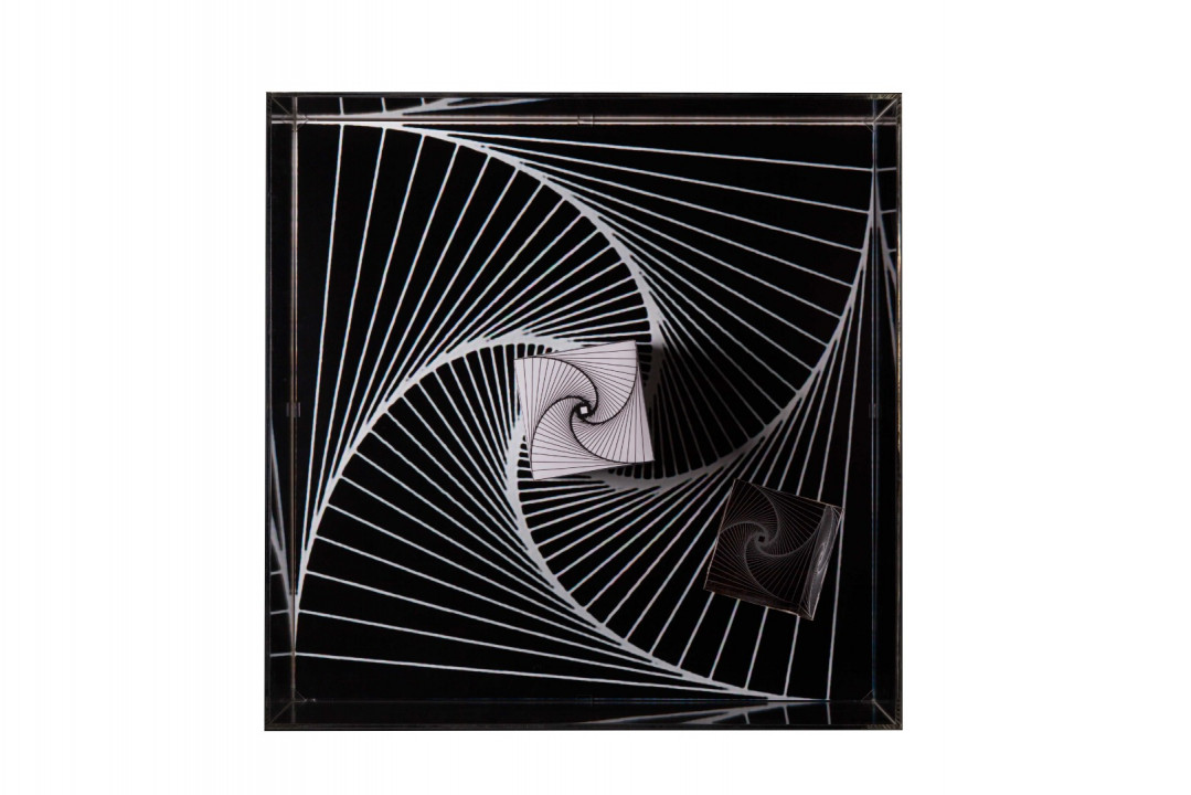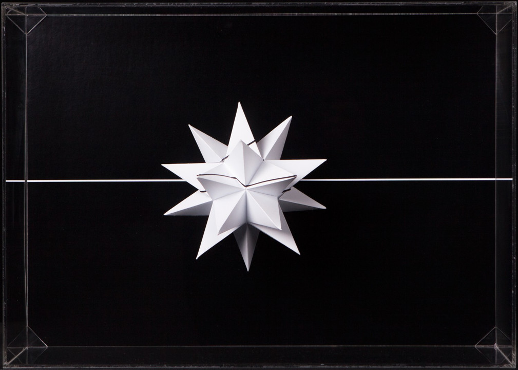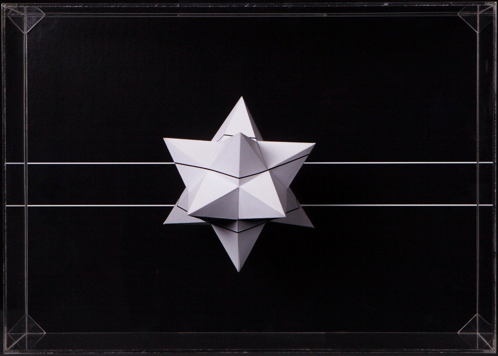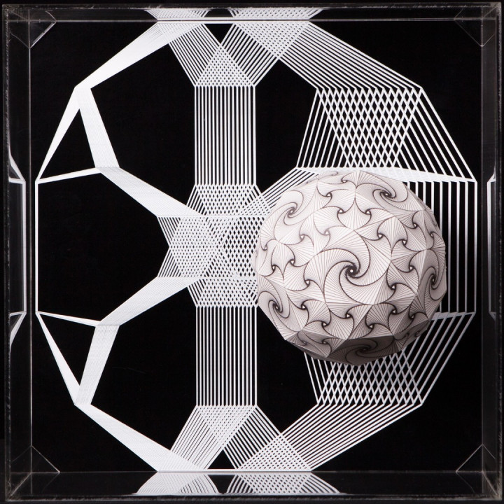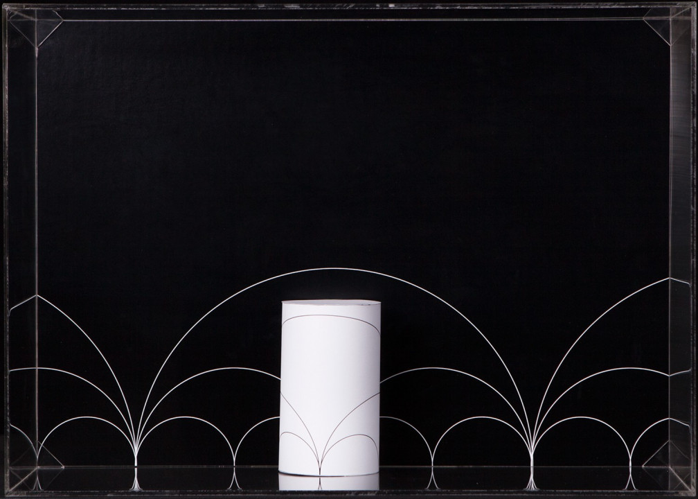 Hyperbolic Hyparxis is an exhibition comprising 60 new works by the artist Margarida Sardinha for the Faculty of Sciences of the University of Lisbon. The monochromatic site-specific exhibition consists of Hyperbolic Hyparxis (an experimental film), Hyperbolic Curves (a 10ft diameter floating sphere filled with helium), Hyperbolic Polyhedra (4 large scale sculptures), Shadow Symbols and Points, Lines and Distances (respectively 36 and 20 works containing a digital background photograph and a three-dimensional polyhedron overlaying it). The five sets of works complement each other in a liminocentric way, thus, they repeat each other akin to recursive definitions in hyperbolic spaces. Its general concept relates to the following scientific, mathematical and geometrical notions: